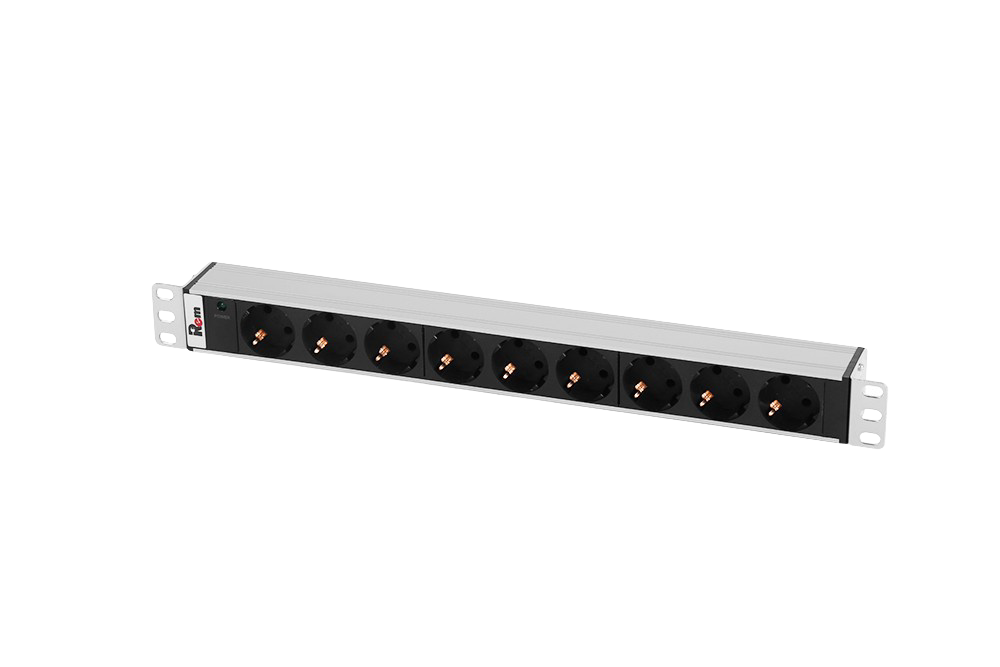 Блок силовых розеток имеет десвять портов Schuko, выполнен в анодированном алюминиевом корпусе. На лицевой части блока установлен индикатор питания. Вход кабеля (шнура) питания - IEC 60320 C14, находится на задней стороне блока. Кабель в комплект не входит. Совместим со всеми линейками 19” монтажного оборудования. Поставляется в индивидуальной упаковке с комплектом крепежа. Выполнен в системе несущих конструкций 482,6 мм по ГОСТ 28601.2 (19-дюймовые конструктивы по МЭК 297).